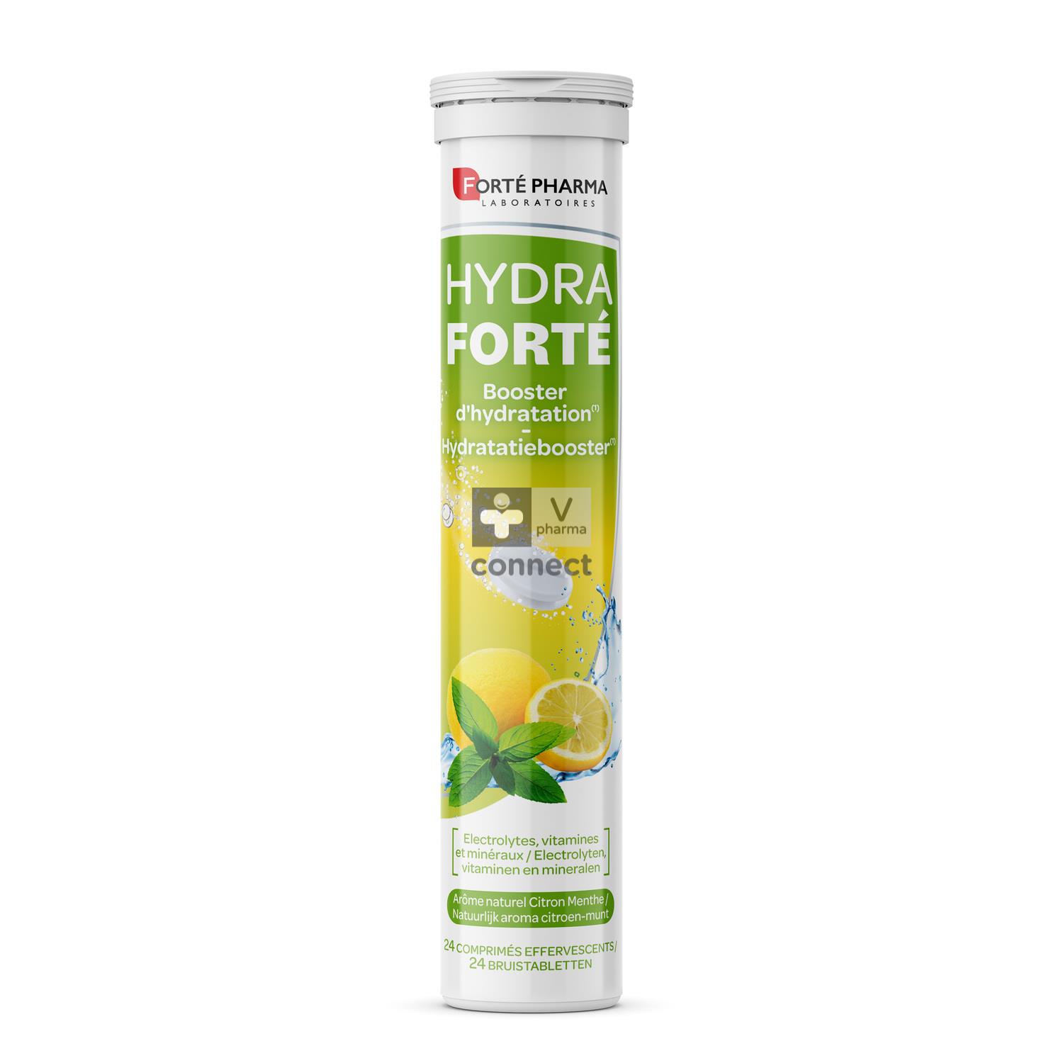 Les électrolytes sont un ensemble de minéraux essentiels pour l’organisme. Un bon équilibre électrolytique* permet une bonne hydratation au quotidien. La formule d’Hydra Forté a été spécialement élaborée pour favoriser l’absorption d’eau par l’organisme et compenser la perte de sels minéraux particulièrement importante lors des activités sportives, en cas de chaleur, post-soirée, en voyage.