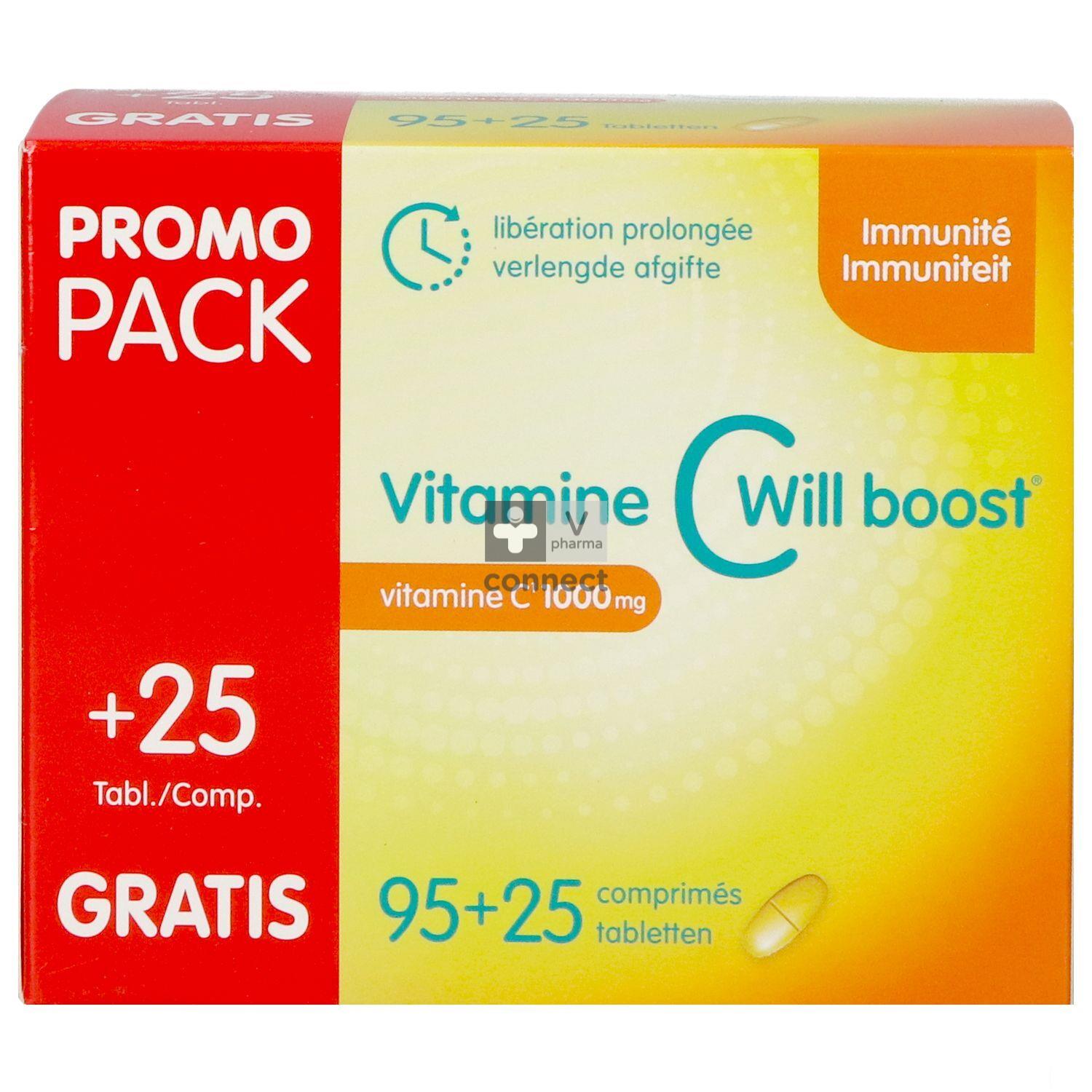 La Vitamine C Will Boost est un complément alimentaire qui libère 1000 mg de vitamine C. Une partie de la vitamine C est libérée immédiatement, l’autre partie est à libération prolongée, fournissant au corps de la vitamine C tout au long de la journée.
