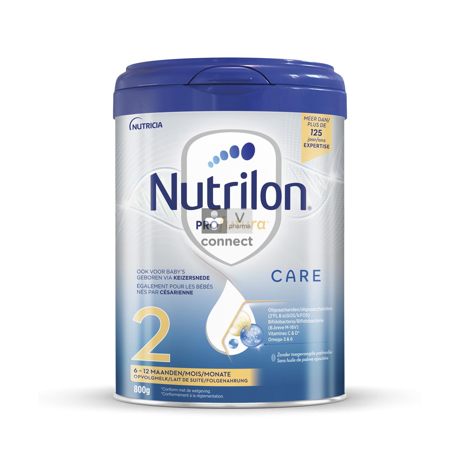 Depuis plus de 125 ans, les équipes de scientifiques, pédiatres et nutritionnistes chez Nutricia développent les formules Nutrilon® les plus avancées, pour ainsi vous offrir le meilleur de notre science. Le système immunitaire et intestinal des bébés n'est pas encore totalement développé à la naissance, mais se construit progressivement. Pour répondre aux besoins spécifiques de votre bébé à chaque étape de son développement, Nutricia a développé Nutrilon® Profutura Care. Nutrilon® Profutura Care 2 est un lait de suite, convenant aux bébés de 6 à 12 mois, également ceux nés par césarienne, en complément d'une alimentation saine et variée. En relais ou en complément de l'allaitement maternel.